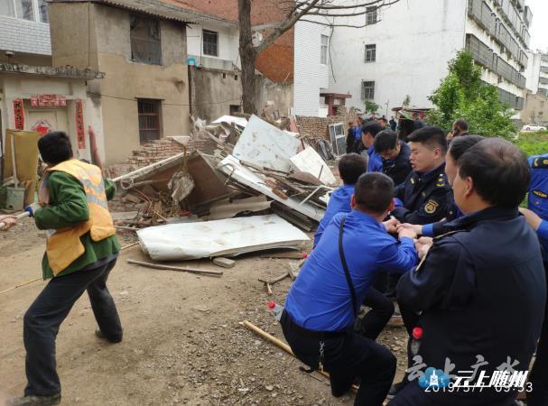 5月7日,广水市城市管理执法局、公安局、住房和城乡建设局等部门组成联合整治专班,对前进南路乱搭乱建棚子、违建房、活动板房等违章建筑物进行集中拆除。当天,各部门共出动人员80余人次,推土机和挖掘机各1台,成功拆除乱搭乱建棚子10余处、私人厕所5处,违建房2处,活动板房8处。