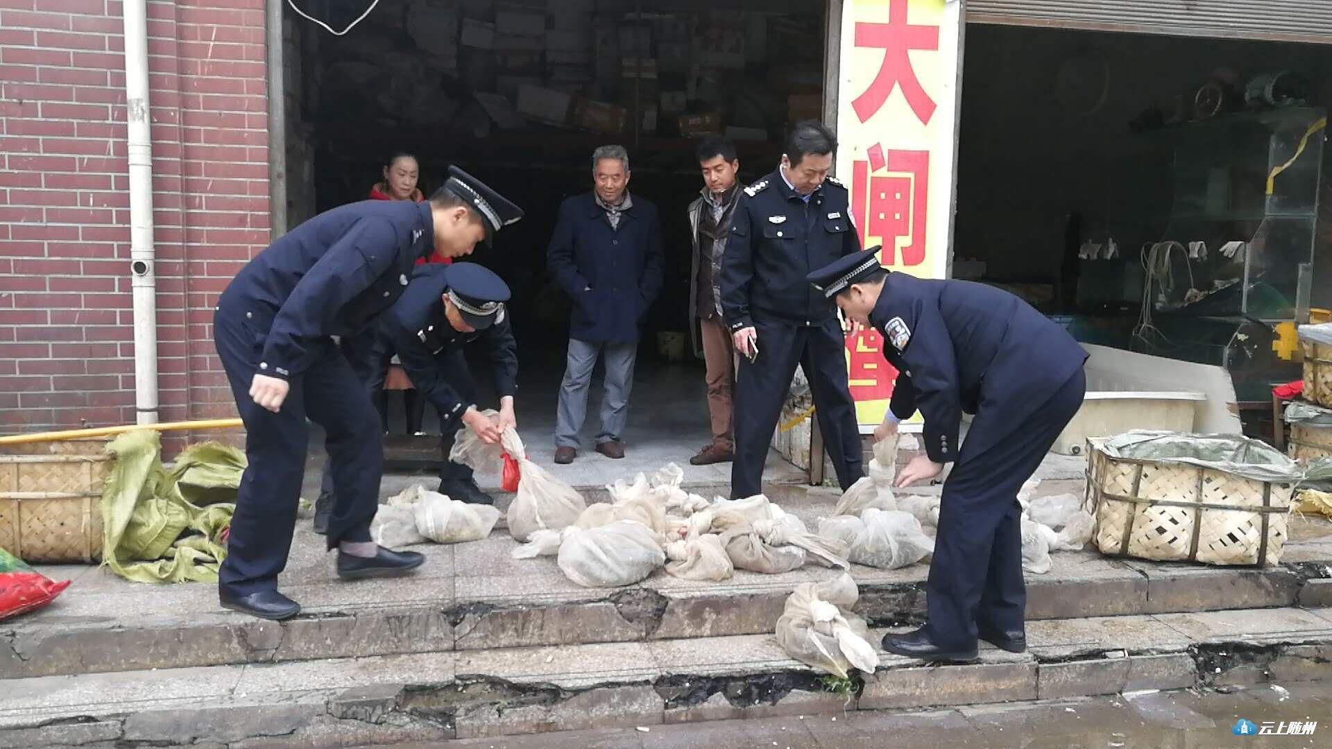 4月28日上午6时30分至16时,按照省、市森林公安局的安排部署,曾都区森林公安分局分成两个专班,在全区开展非法贩卖野生动物统一清查行动。行动中查获一水产店,收缴19袋蛇共27条,其种类有乌蛇、菜花蛇和棉蛇,店主江某启正准备将这些动物卖给附近的餐馆。