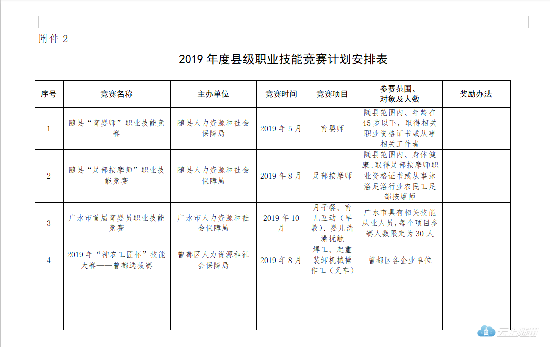 2.2019年度县级职业技能竞赛计划安排表
