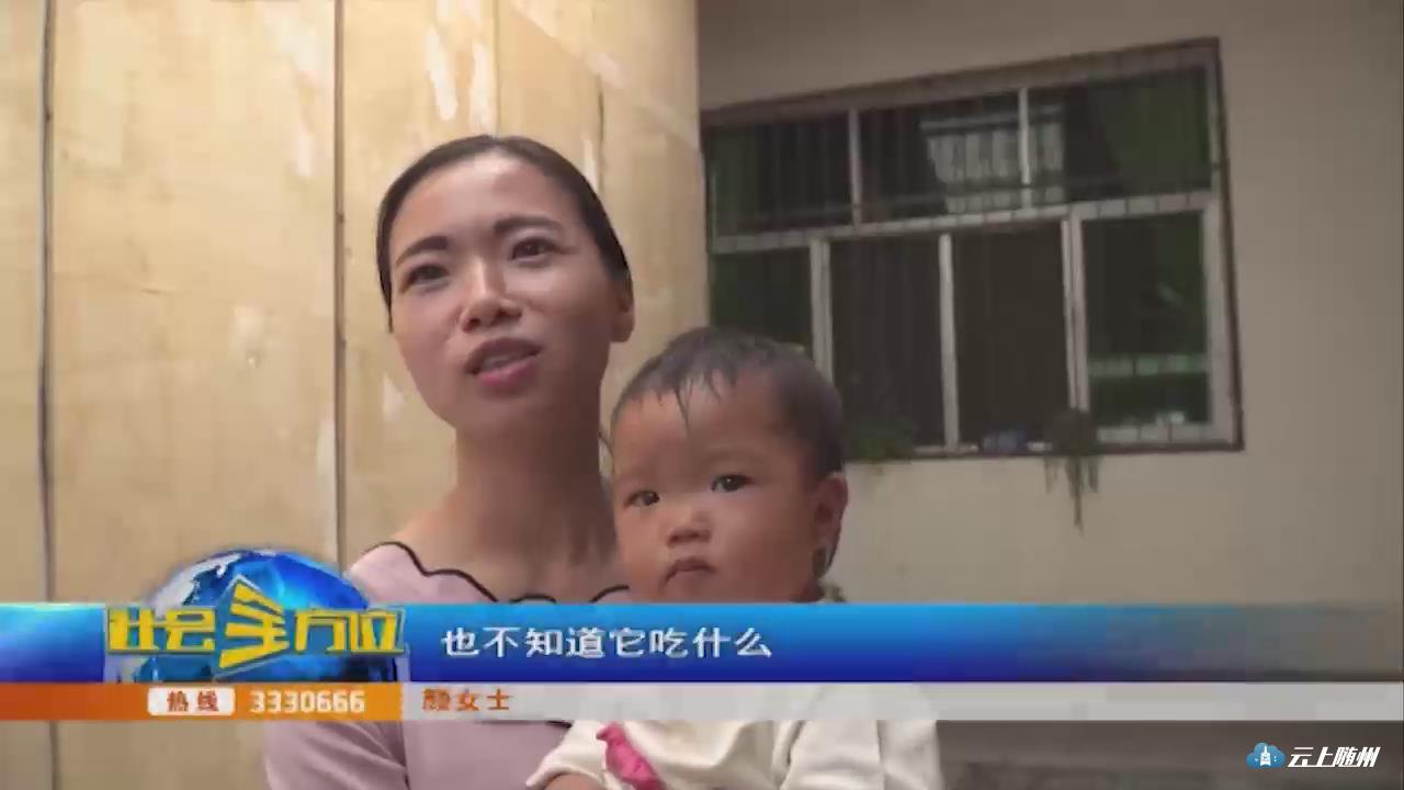 【采访】颜女士:也不知道它吃什么,我就上网搜了一下,好像说是吃粮食类的,就给它喂了一点稻谷喂了一点水。