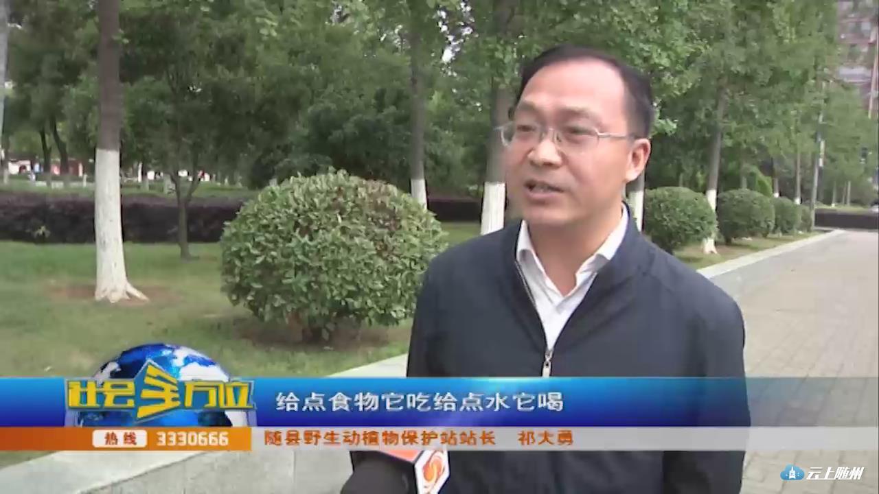 【采访】随县野生动植物保护站站长 祁大勇:第一步是初步观察,形成一个初步的印象,看它是不是有病受伤。避免直接接触,比如说戴个手套使用木棍,简单的控制它捉住它,进行仔细观察,如果是生病,就要保护现场,千万不能接触,电话联系专业部门来处置,如果是受伤的话,可以做一些简单的处理,比如说消毒消炎,简单的包扎,给点食物它吃给点水它喝,发现它恢复精神以后就可以联系我们放生,或者是直接放归自然。