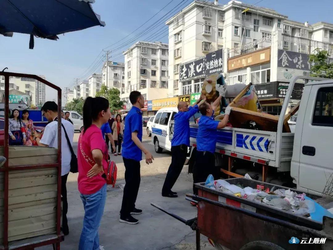 5月11日早上6:30,西城办事处副主任卢青、黄虎带领环境秩序整治专班联合市、区两级城管执法人员,在乌龙巷、草店子、水西门菜场、聚玉街及小南门街周边开展集中整治。共劝阻出店经营商铺23户,劝离流动摊贩15个,暂扣违规广告牌6个,对违规占道经营等不文明行为劝导整治持续保持高压态势,引导经营门店、流动摊贩规范守法经营,确保形成常态化的干净、整洁、有序环境秩序。