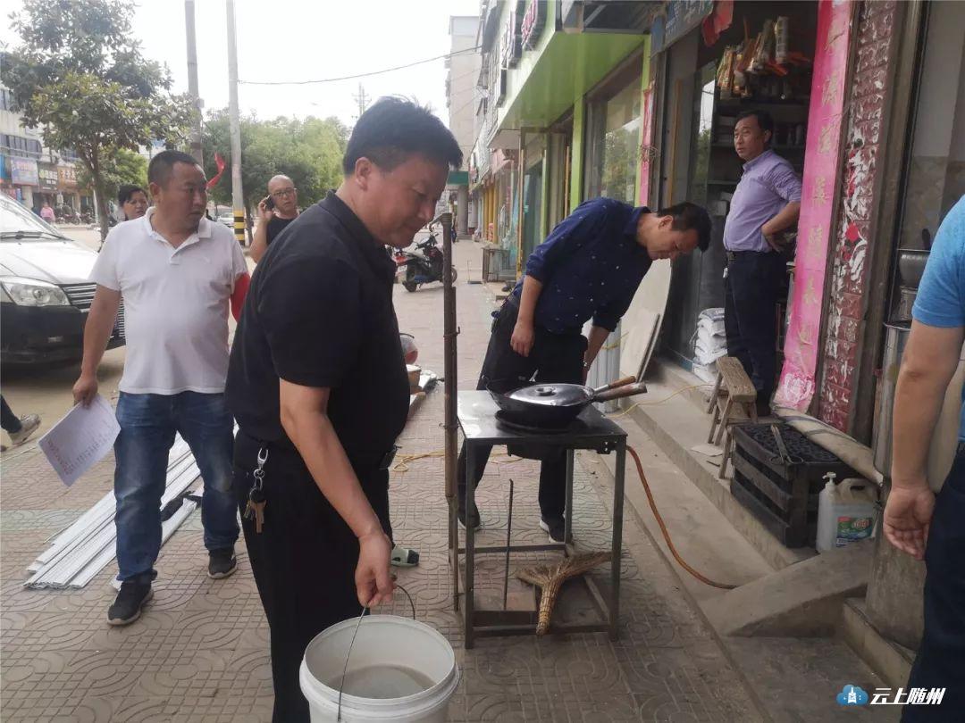5月10日下午,府河镇党委书记张军、镇长刘问新带队,联合城建办、市场监督管理所继续开展环境卫生和街面秩序整顿,重点整治违规乱搭乱建及不规范的遮阳棚,对沿街商户逐一劝说,要求各商户按通知书规定,利用周末时间尽快自行拆除。