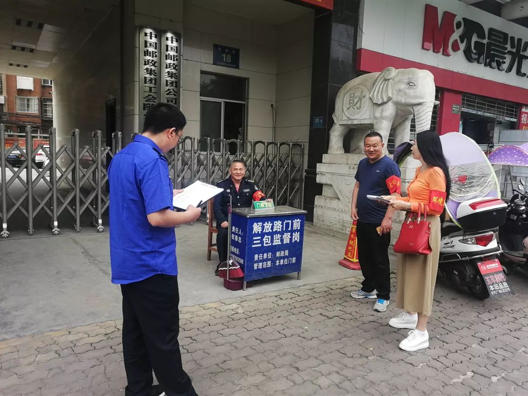 3、巧心而为摆整齐。依托城管队伍,依靠社区干部,结合群众意愿,分门别类,广告定位,招牌统一,逐一研判,因地制宜,因项施策,精巧摆放,把有用的东西摆整齐,无用的东西收干净。辖区单位要设置“门前三包”监督岗,做到有桌、有牌、有人、有扫把、有撮箕,明确人员,强化责任,负责本单位门前卫生保洁、经营秩序管理、牛皮癣清理和规范车辆停放秩序等。加强出租经营门店监督管理,不准出店占道经营、乱泼乱倒垃圾、乱停乱放车辆。特别是辖区中小学校的“门前三包”岗,要安排有能力有责任的人负责,加强与公安交警、城管、市场监管等部门对接协作,整治校园周边环境,保障师生出行安全和食品安全。