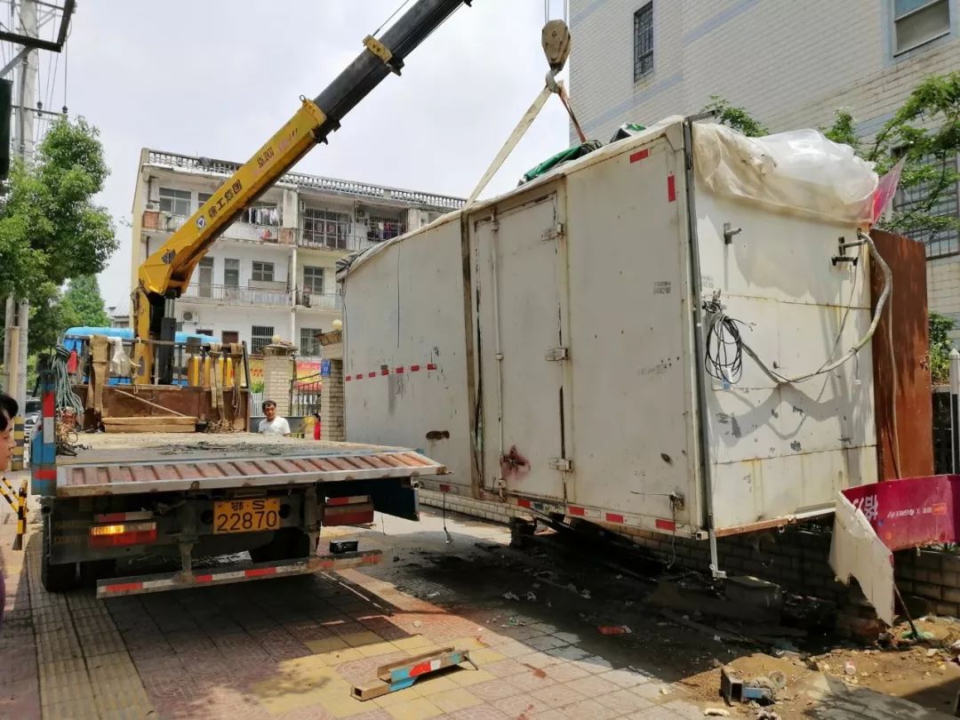 拆除结束后,西城办事处组织环卫工人、铲车、执法车辆对周边占道堆放的杂物进行了集中清理清运。