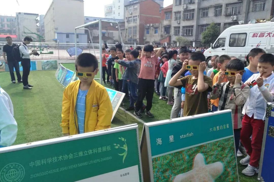 当天,科普大篷车开进岁丰学校,为孩子们上了一堂生动的科普小课堂,孩子们纷纷带上3D眼镜体验科学的神秘和乐趣。