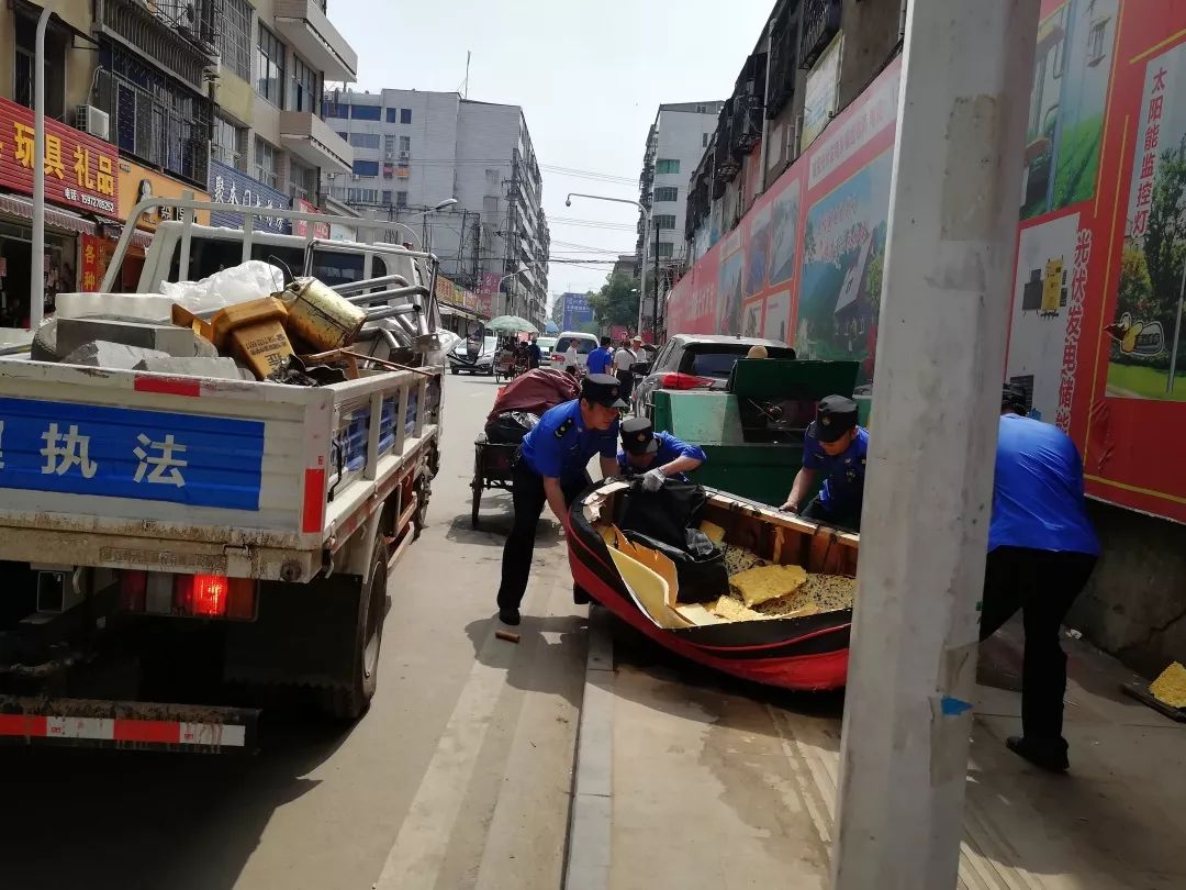 5月18日早,北郊办事处环境综合整治工作专班联合城管执法局、市场监管所和黄龙社区,在花溪巷及烈山大道开展集中整治。整治出店经营商家8家,劝离流动摊贩6户。