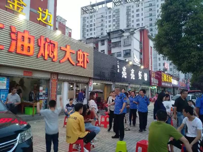 5月17日晚,北郊办事处环境综合整治工作专班联合城管执法局、市场监管所、黄龙社区,对花溪巷、冷家东巷口、烈山大道、明珠广场、二桥头虾市的出店经营、流动摊贩和环境卫生进行常态化整治。