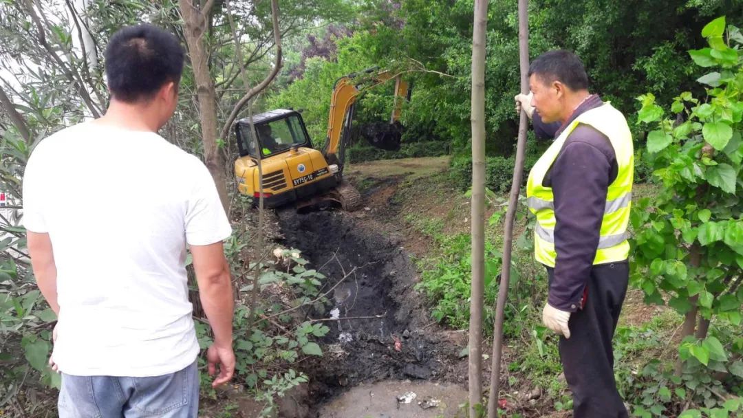 5月17日下午,城南新区管委会主任聂德江联合城管执法局,察看随州职业技术学院对面排水沟污水治理情况。