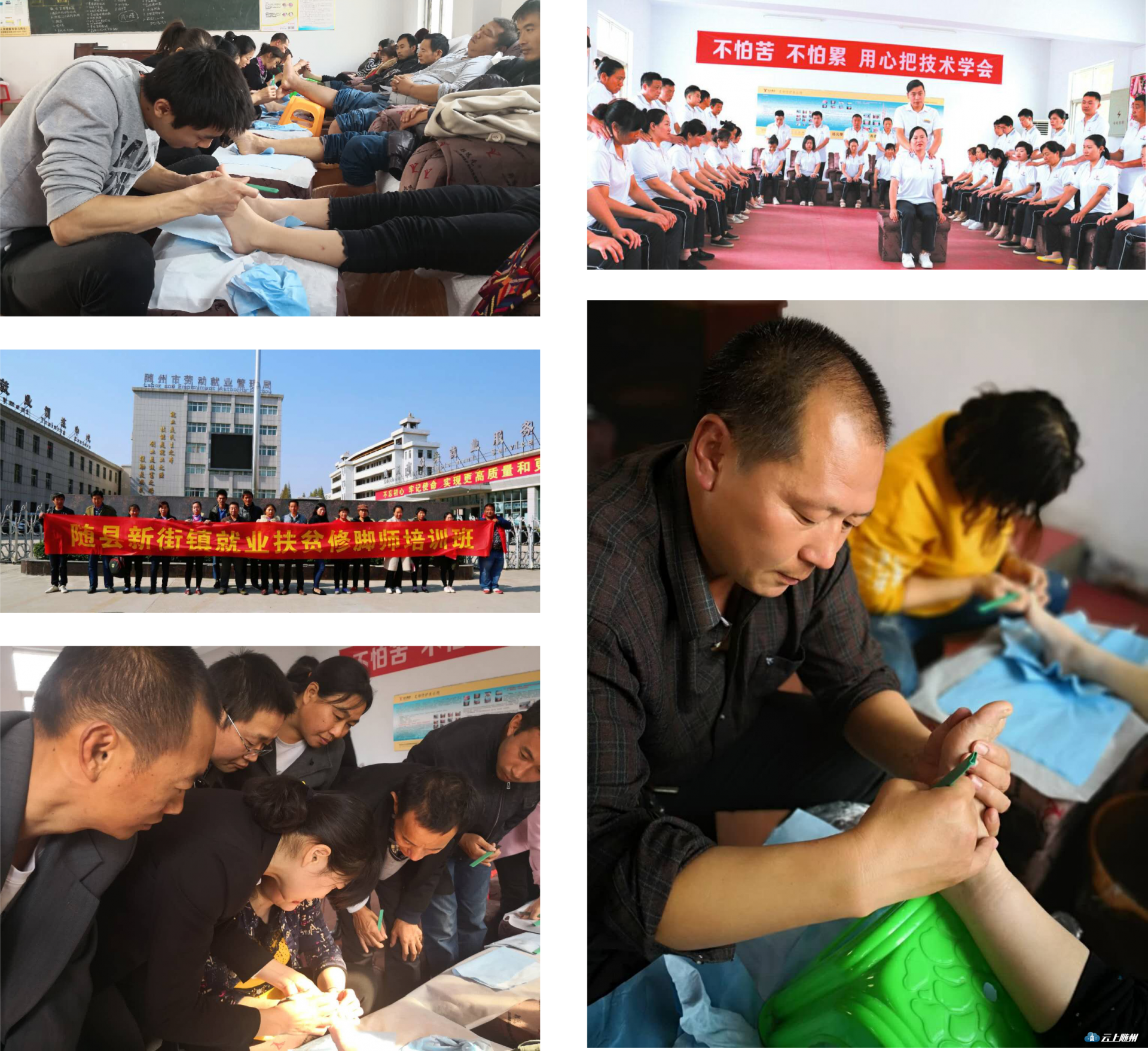 谁能想到,在这之前,赵明刚是我市一名建档立卡的贫困人员。他家里有四口人,两个孩子正上大学,经济困难,家庭负担繁重。俗话说,授人以鱼不如授人以渔。自脱贫攻坚战役打响以来,随州市就业部门积极推行就业扶贫,远赴陕西省紫阳县远元集团进行考察,发现企业对修脚师的需求量很大,于是与远元集团合作开展“基地培训+就业安置”的“修脚师培训”技能精准脱贫模式,取得了良好效果,赵明刚就是众多受益人之一。
