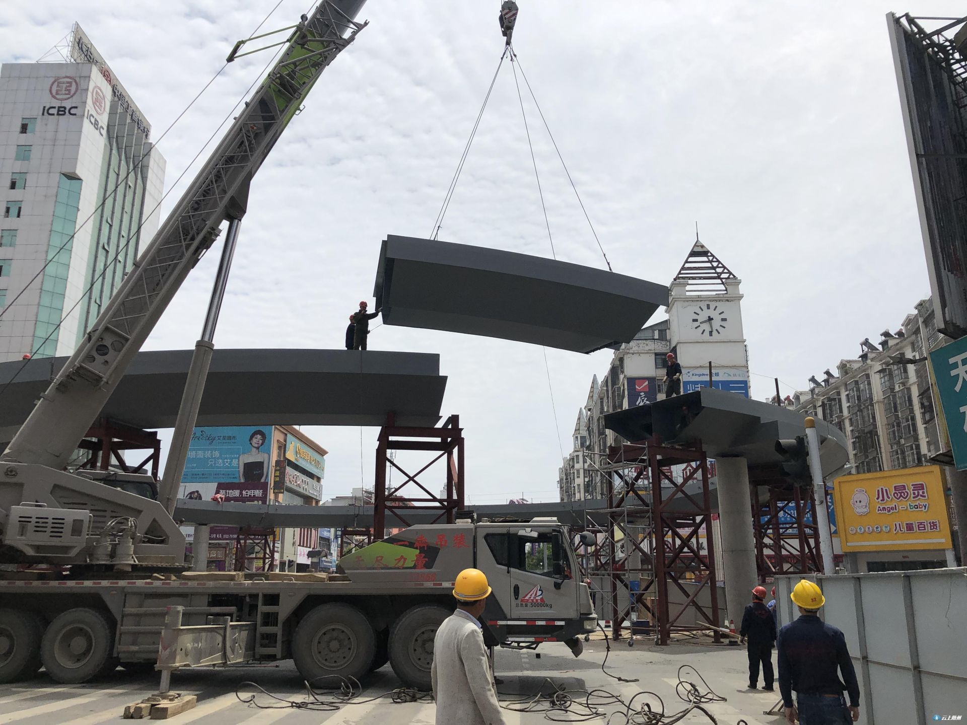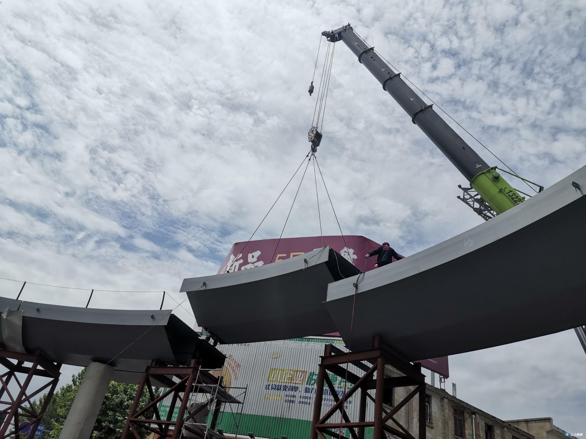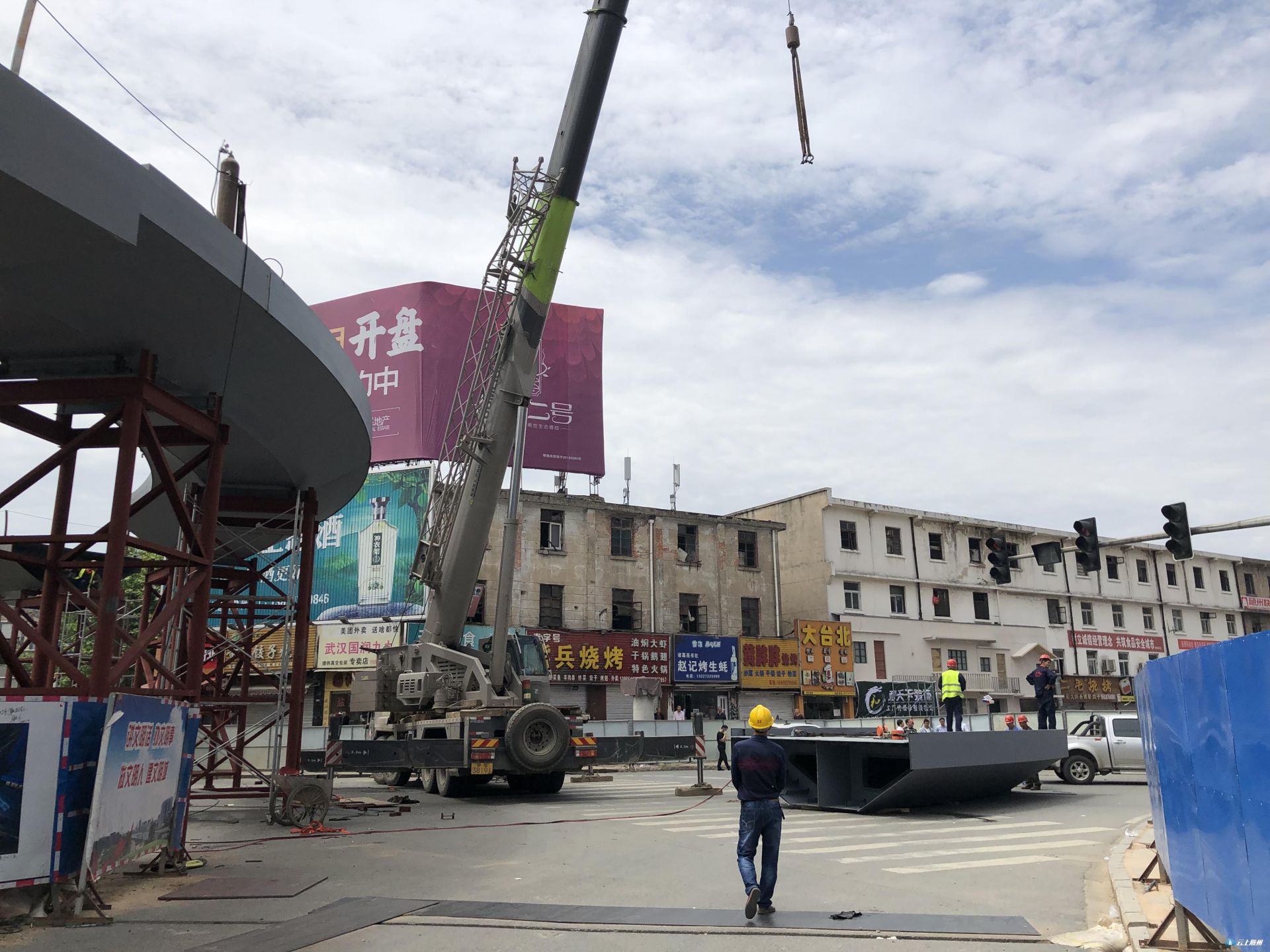 快讯 | 大润发人行天桥主体圆形桥面正式拼装完成