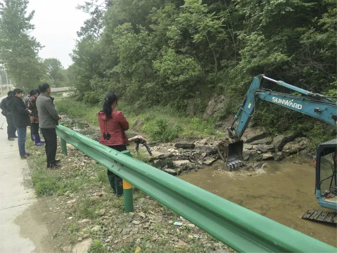 出动大型机械清理河道。