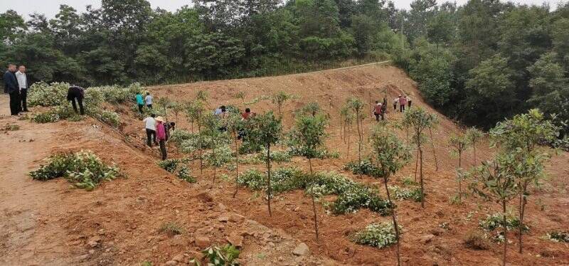 5月19日,对三岔湖村四组的垃圾堆放点进行整治,将存量垃圾全部清运至市城南垃圾填埋场,随后进行生态修复,种植500余棵红叶石楠。