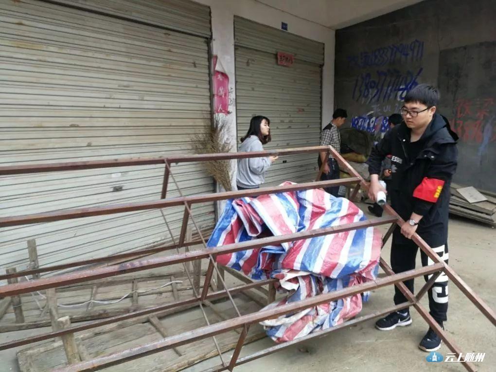 5月25日上午,城南新区环境秩序整治工作专班联合市、区两级城管执法队员,对涢水社区早市秩序进行常态化整治,劝离流动商贩5处,整顿出店经营3家。上午9点,工作专班及城管执法队员,对随州职业技术学院段小广告、“牛皮癣”进行清理。