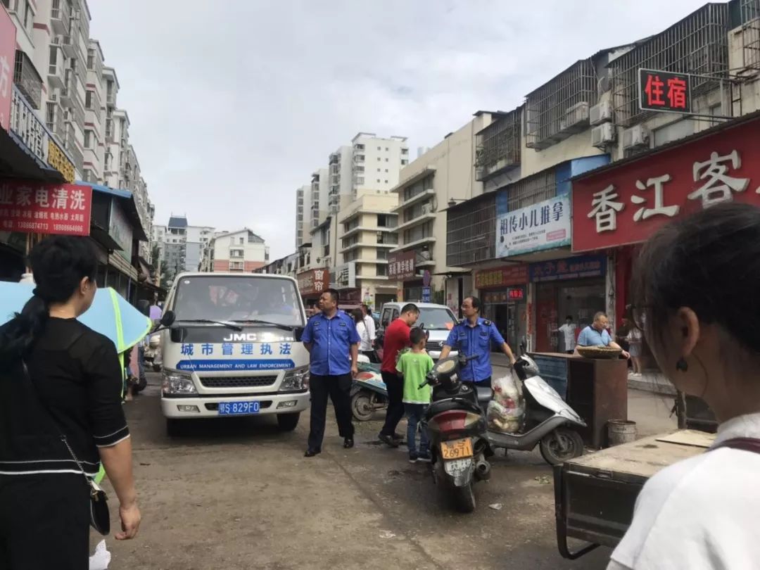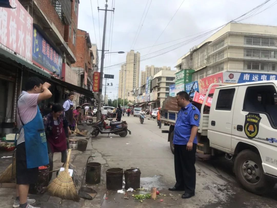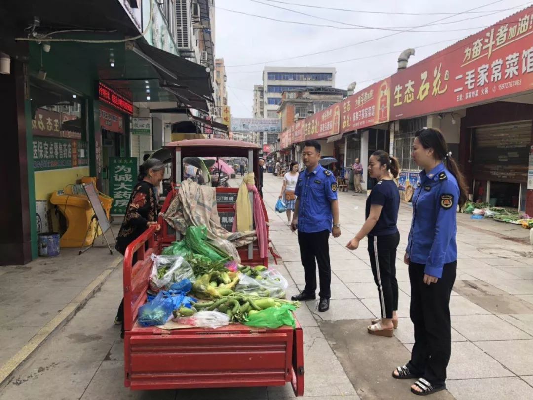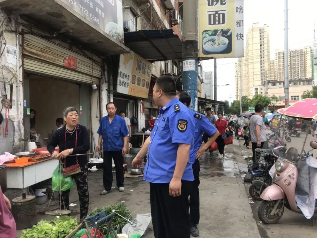 5月26日上午,对瓜园社区王家巷、白云社区金三角、擂鼓墩大道、青年西路进行规范整治,清理占道经营、出门出窗、沿街叫卖、乱停乱放行为,整治出门出窗9处,占道经营8处,劝离流动摊贩9处。