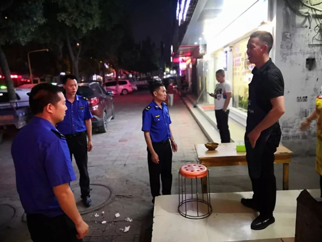 5月25日晚,城管执法队员对舜井道、盖帝大厦周边、文峰西街、香江二期夜市开展巡查管理。