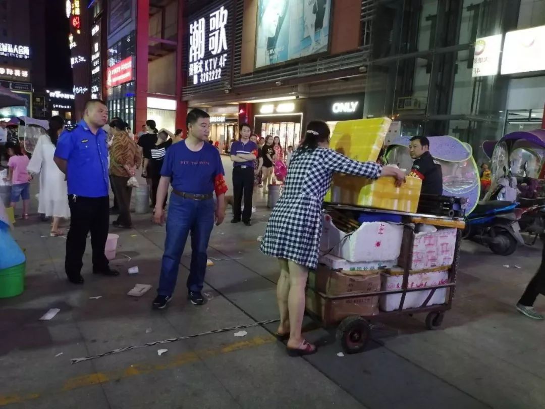5月27日,东城办事处党工委书记王先高、办事处主任高国新带队对香江商贸温州二街、深圳街进行集中整治,劝导出店占道经营、流动摊贩等行为,清理流动广告牌、流动摊车、乱堆乱放杂物。