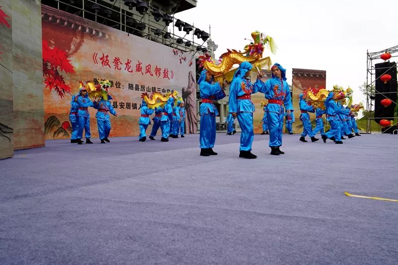 演出一开始,由随县厉山镇三中的学生们演绎的非遗节目《板凳龙》和长青艺术团带来的民间节目《威风锣鼓》一出场,就抓住了人们的眼球,作为曾经流传在安居镇一带的民间舞蹈,《板凳龙》、《威风锣鼓》代表着随县的本土文化,是荆楚文化的一部分,也走上了省级文艺汇演的舞台。