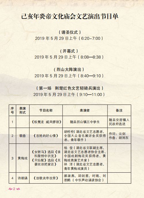 在己亥年炎帝文化庙会开幕(5月29日)倒计时最后一天,5月28日下午,文化庙会文艺节目进行了最后的彩排,文化庙会首场荆楚红色文艺轻骑兵演出进行了预演,吸引了许多群众前来观看。