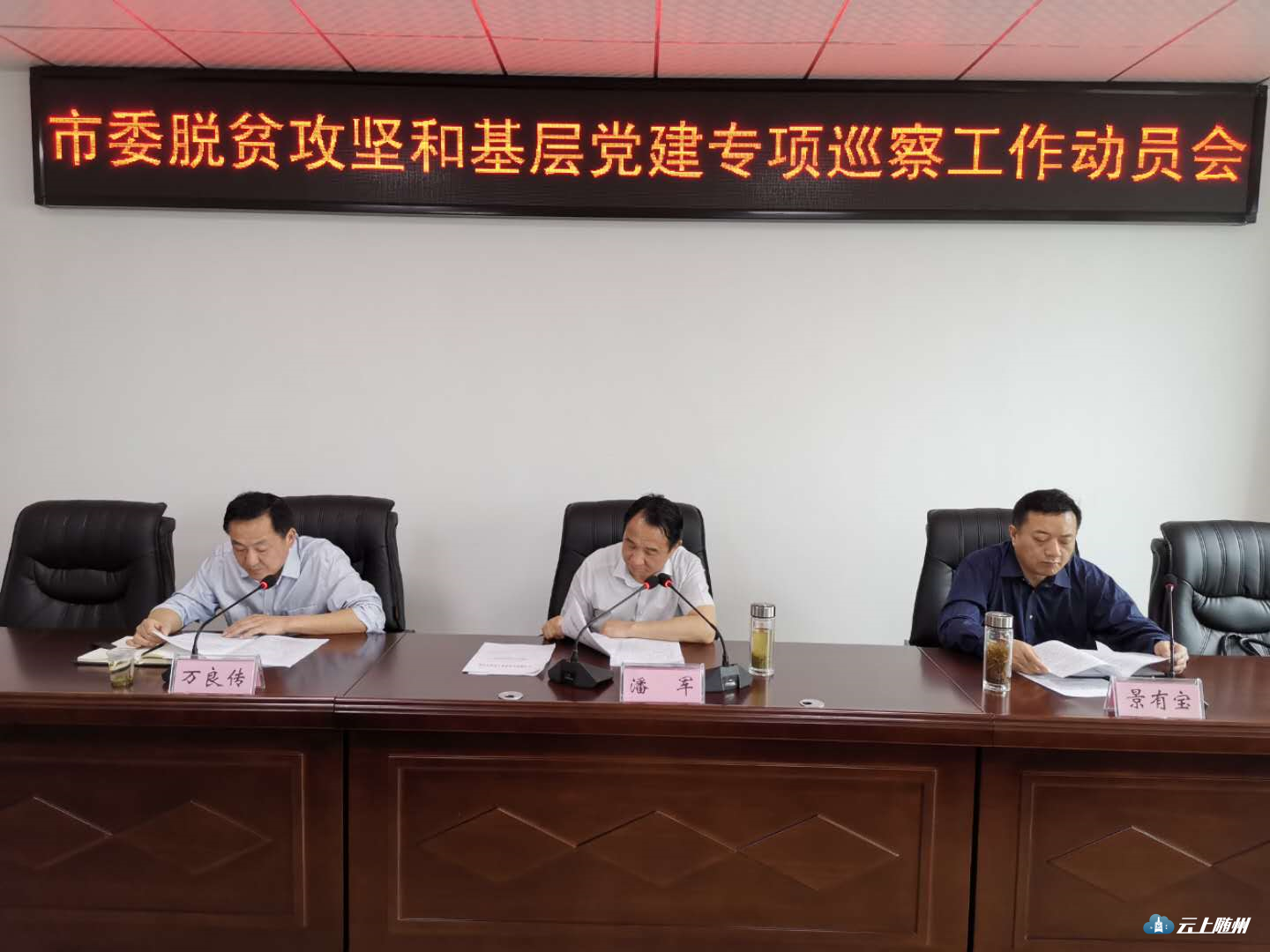 市委脱贫攻坚和基层党建专项巡察工作动员会召开,根据2019年度市委巡察工作计划,经市委巡察工作领导小组研究同意,决定从6月上旬开始,开展脱贫攻坚和基层党建专项巡察工作。