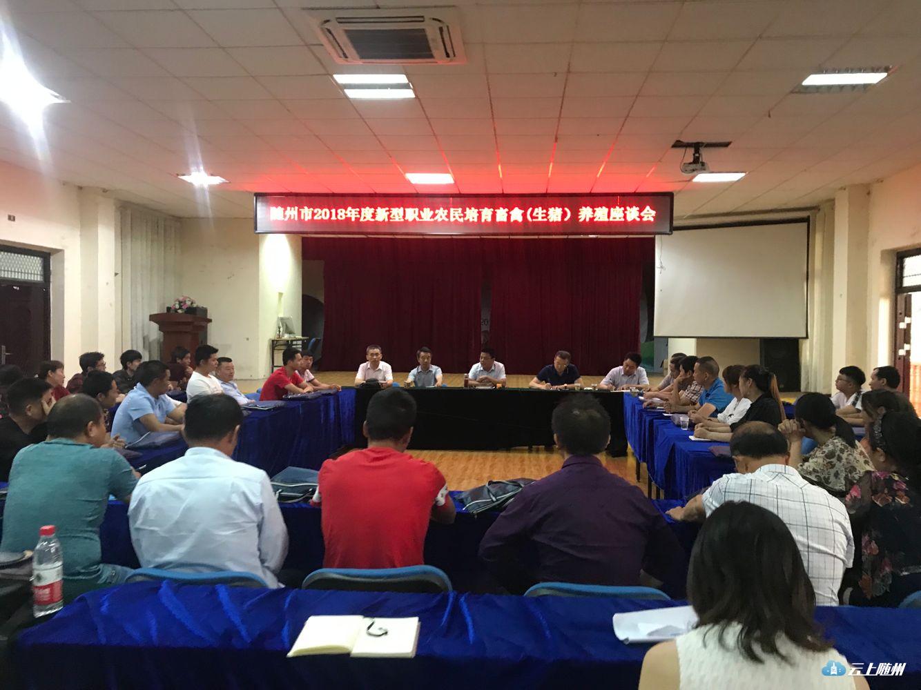 5月27日晚上7点,随州市2018年度新型职业农民培育畜禽(生猪)养殖培训班教室灯火通明,市纪委监委派驻市农业农村局纪检监察组组长谢洪斌、副组长侯长能、市农业农村局副局长刘炎华等一行,正在与培训班学员举行座谈会。