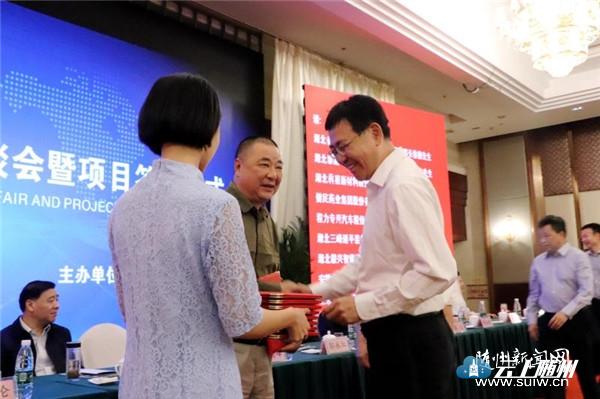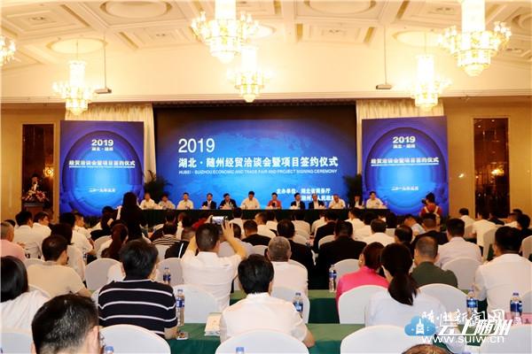 5月29日,由省商务厅和随州市政府联合举办的2019湖北·随州经贸洽谈会在随县神农国际大酒店举行。12个项目现场签约,投资额达110.5亿元,其他28个项目会后对接签约,投资额达177.7亿元。