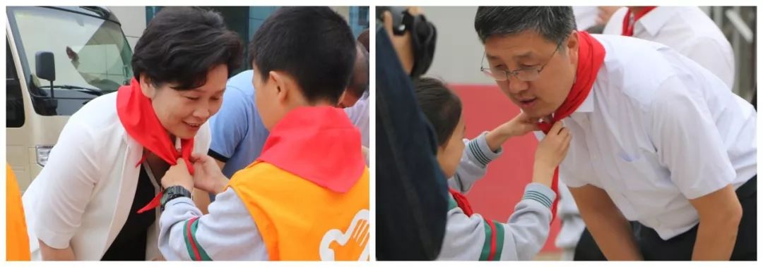 每到一所学校,随县领导都受到孩子们的热烈欢迎,孩子们簇拥在一起,兴奋地为县领导戴上鲜艳的红领巾,共庆快乐“六一”。