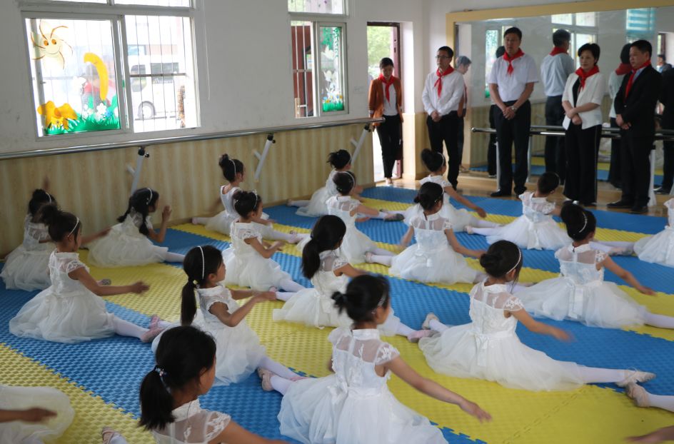 在厉山镇王岗小学,毕道丽、陈兴旺一行先后参观了东风科普教室、东风希望食堂等,随后来到学校操场,观看舞蹈呼啦圈、“绳”彩飞扬、中国范等,看到孩子们热情洋溢地表演,县领导满脸笑容,俯下身向他们问好,祝愿他们儿童节快乐。