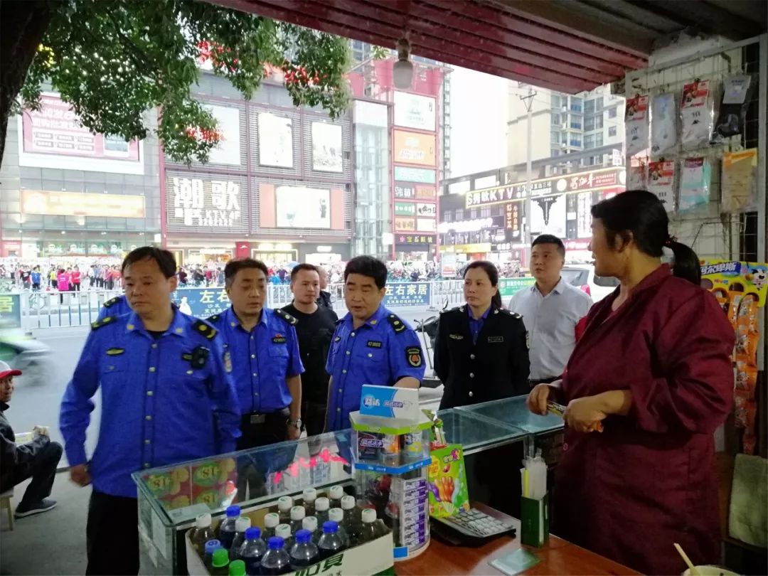 5月30日晚,北郊办事处环境综合整治工作专班,对民悦路、花溪巷、烈山大道、二桥头虾市、明珠广场等路段出店经营、流动摊贩和环境卫生进行整治。