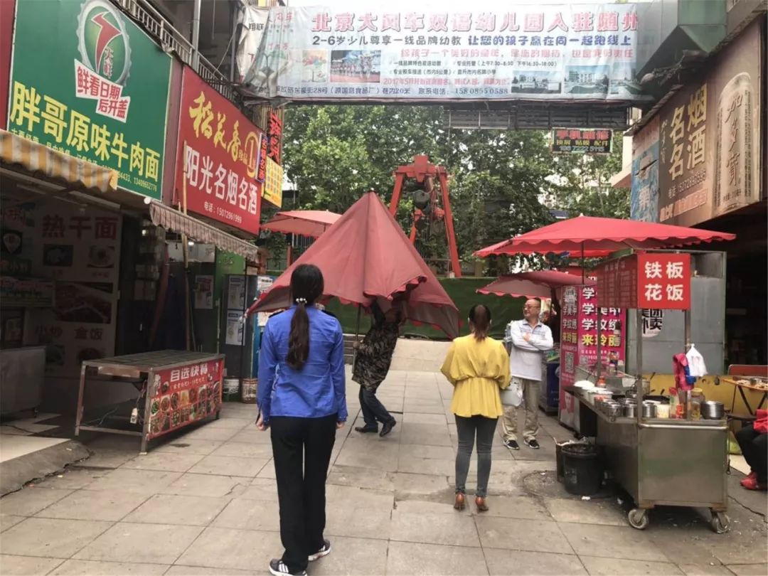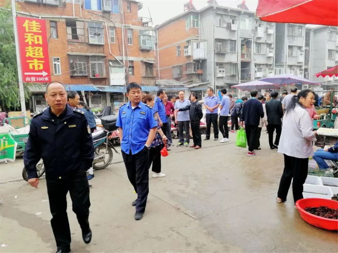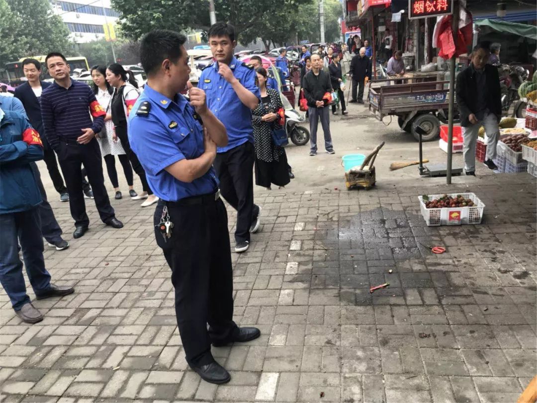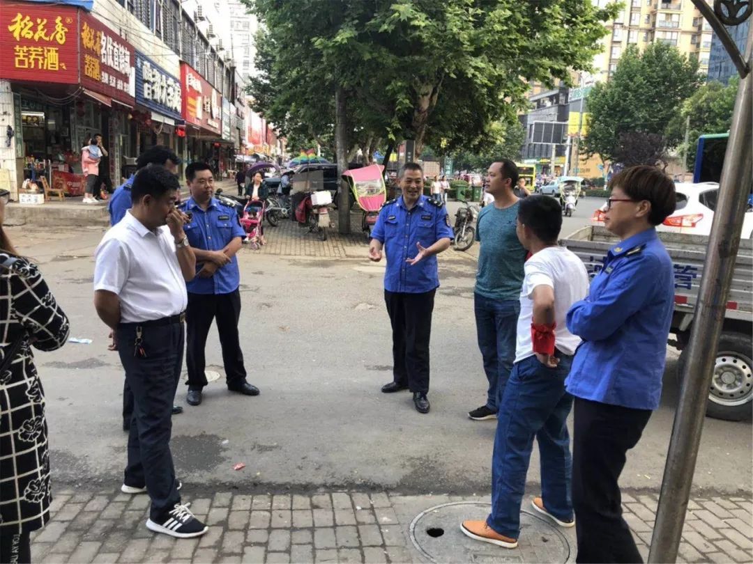 5月31日早,北郊办事处环境综合整治工作专班联合城管执法、市场监管所和黄龙、楚风社区对花溪巷出店经营、流动摊贩和环境卫生进行常态化整治。