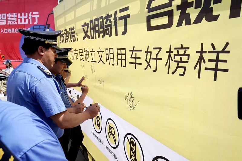 “我承诺:文明骑行、合规停放,为市民树立文明用车好榜样。”在启动仪式后,参会人员纷纷在文明骑行承诺签字板上签字,并参与绿色低碳骑行活动,主动践行低碳出行、文明骑行理念。
