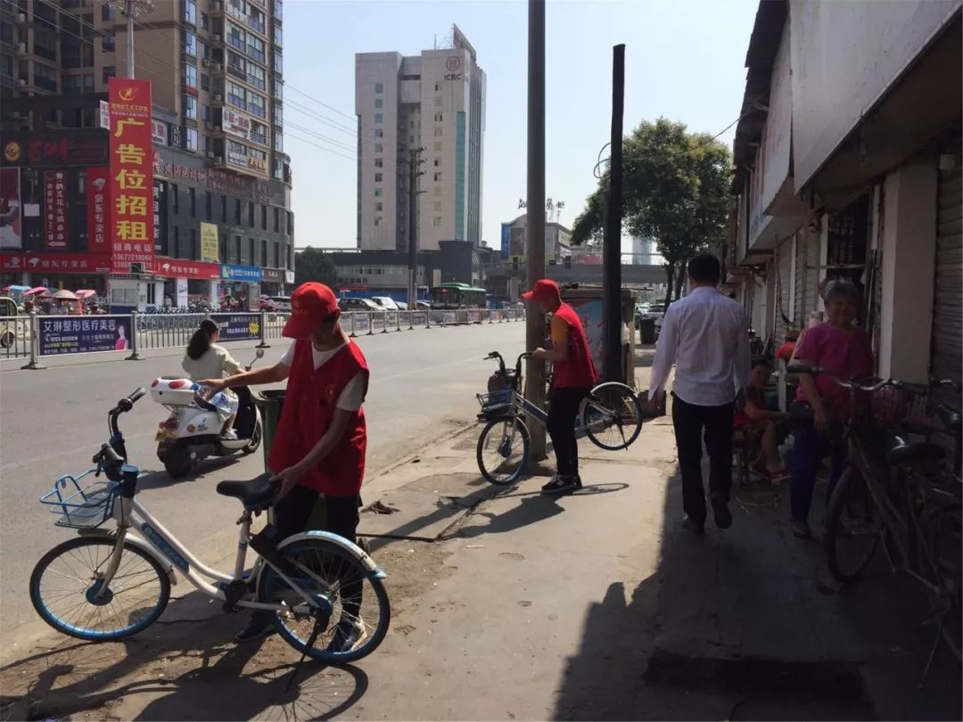 西城铁树社区组织学生志愿者参加环境秩序整治行动,对烈山大道、青年路临街商铺进行规范经营劝导、引导车辆停放整齐,通过实际参与,让学生体验安全文明秩序的重要性,养成文明安全出行的良好习惯。