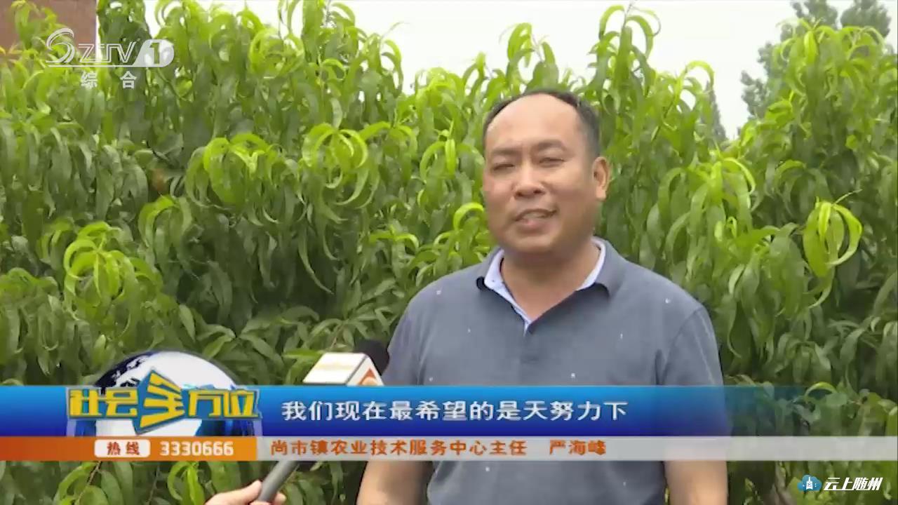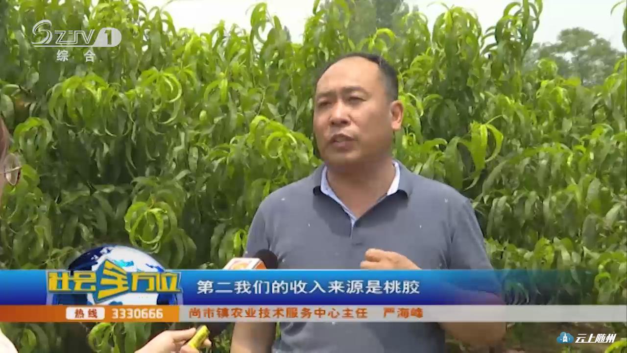 【采访】尚市镇农业技术服务中心主任 严海峰:我们今年的价格从5月12号到现在一直没有低于一块,老百姓还是能赚到一些钱的,但如果后期,像这种丰光(油桃),不下雨的话,它就不能膨大,就会荒废了。第二我们的收入来源是桃胶,如果不下雨。桃树也不产桃胶,老百姓的收入又要降低。