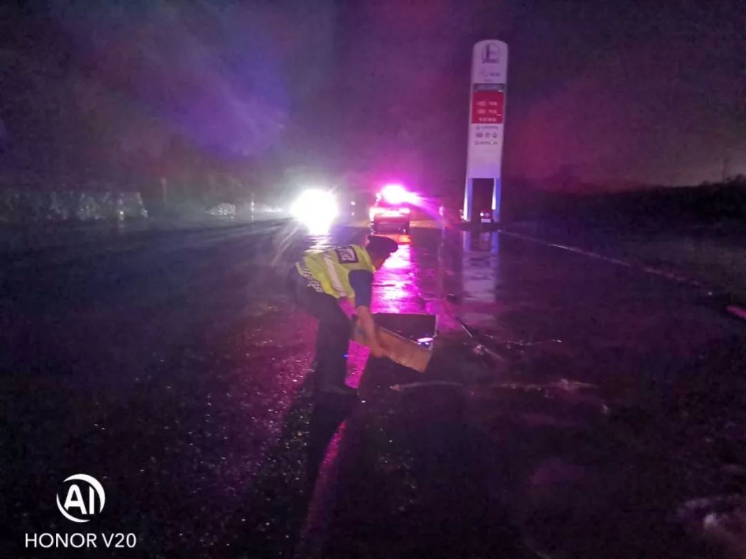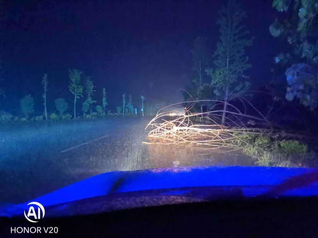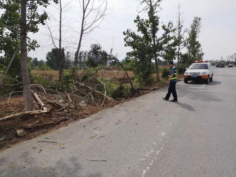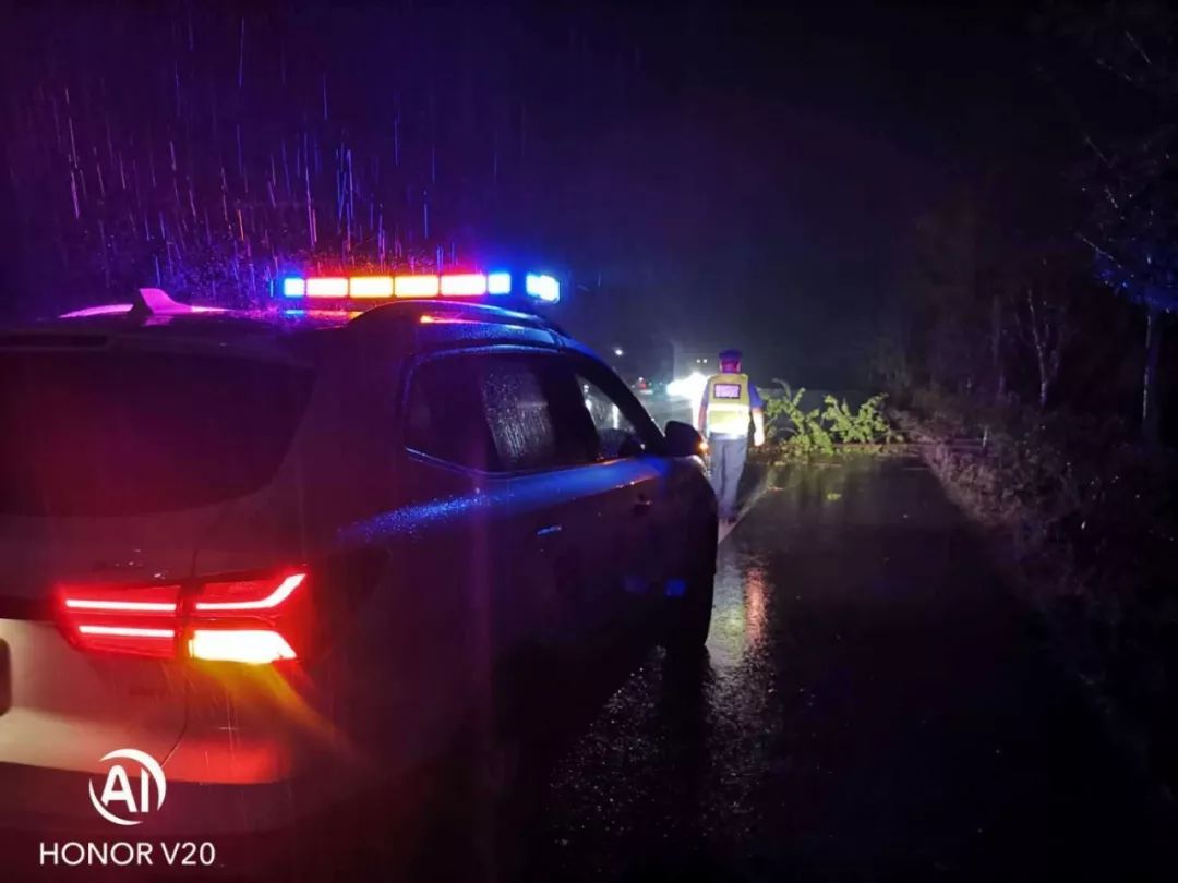 面对突发情况,路政执法人员及时果断处置,顶风冒雨迅速在事发地设置好锥形桶等警示标志,联系应急机械到场协助处理。经过数小时的应急处置,倾倒树木被清离主路,该路段交通恢复畅通。处置期间该路段未发生交通堵塞和交通安全事故,路政执法人员及时得当的处置赢得了过往驾乘人员的一致好评。