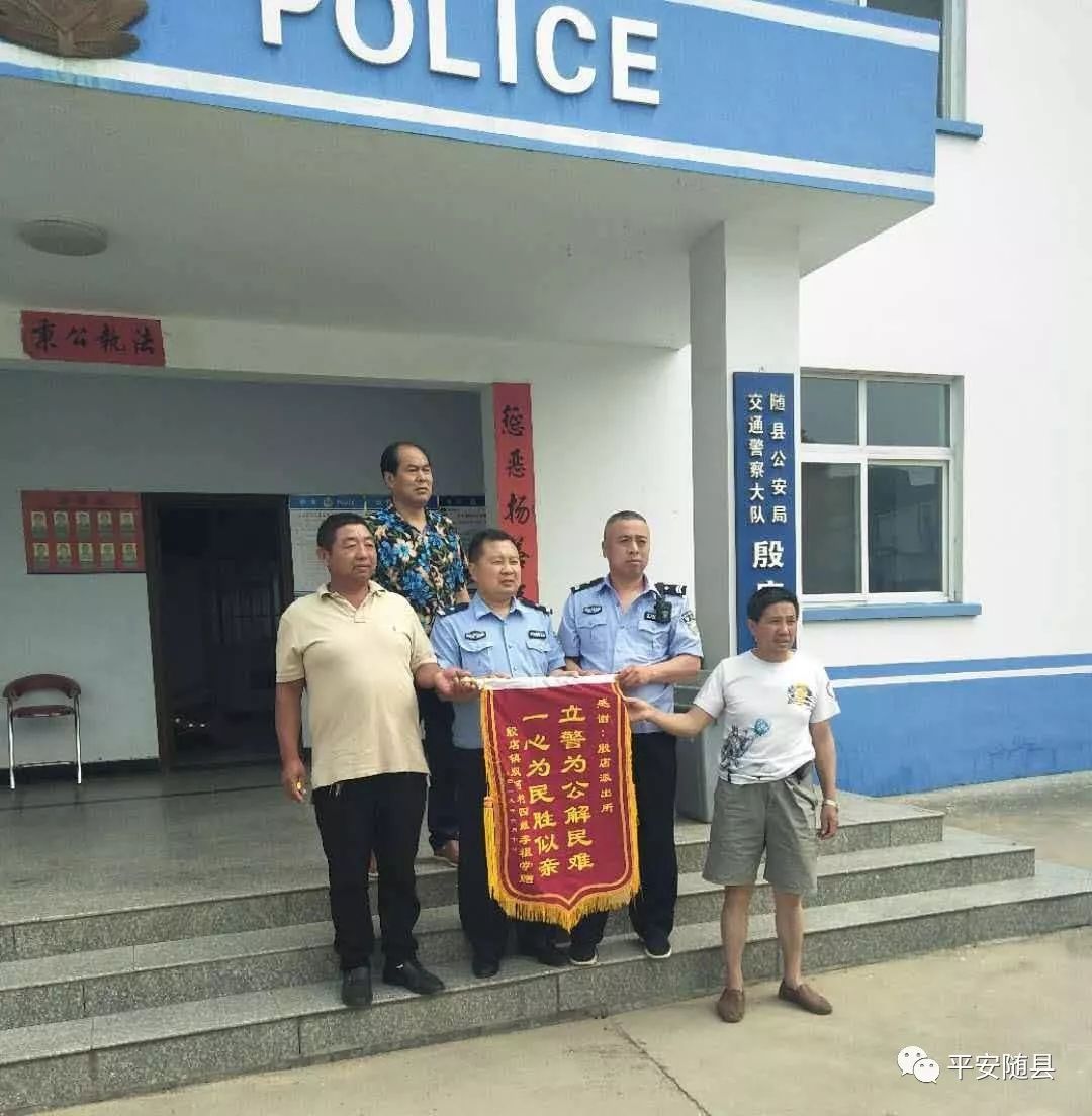 6月10日上午,殷店镇双河村村民李某将一面写有“立警为公解民难 一心为民胜似亲”的锦旗送到殷店派出所民警手中,表达对民警不辞辛劳,奔波多日找回其走失亲人的感激之情。