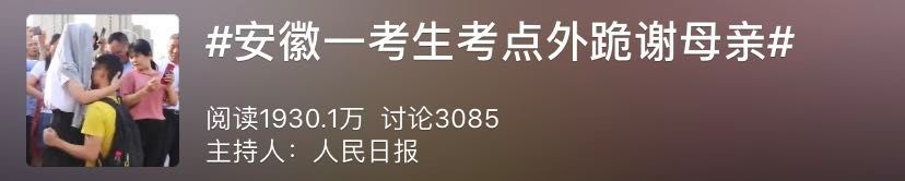 很快,话题#安徽一考生考点外跪谢母亲#在微博引发热议。