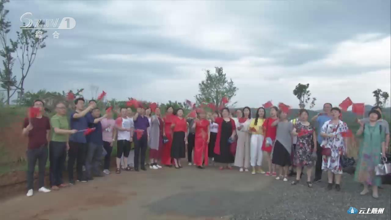 一场大雨过后,大洪山花果海风景区空气清新湿润,连绵起伏的山坡上,各类果树枝繁叶茂。来自大洪山各单位的职工代表200多人,相约花果海,大家手持小红旗,漫步在山野田间,齐声合唱一首《我爱你中国》。