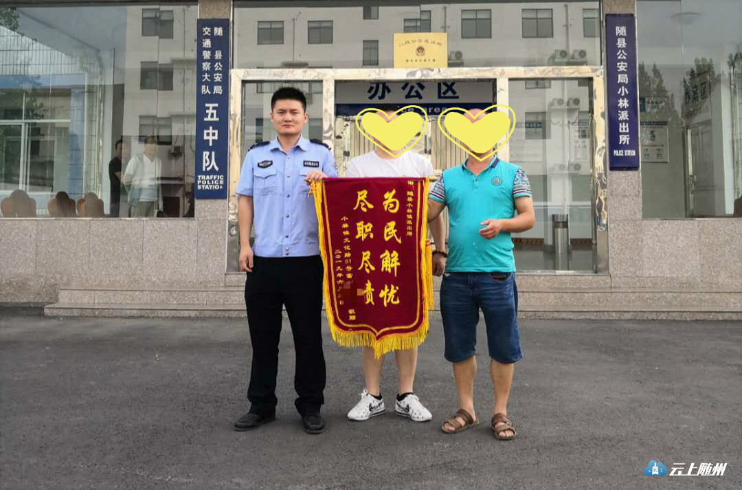 6月12日,小林镇居民雷某来到小林派出所,将一面绣有“为民解忧 尽职尽责”的锦旗送到民警手中,他激动地说,“感谢人民的好警察帮我找回儿子。”