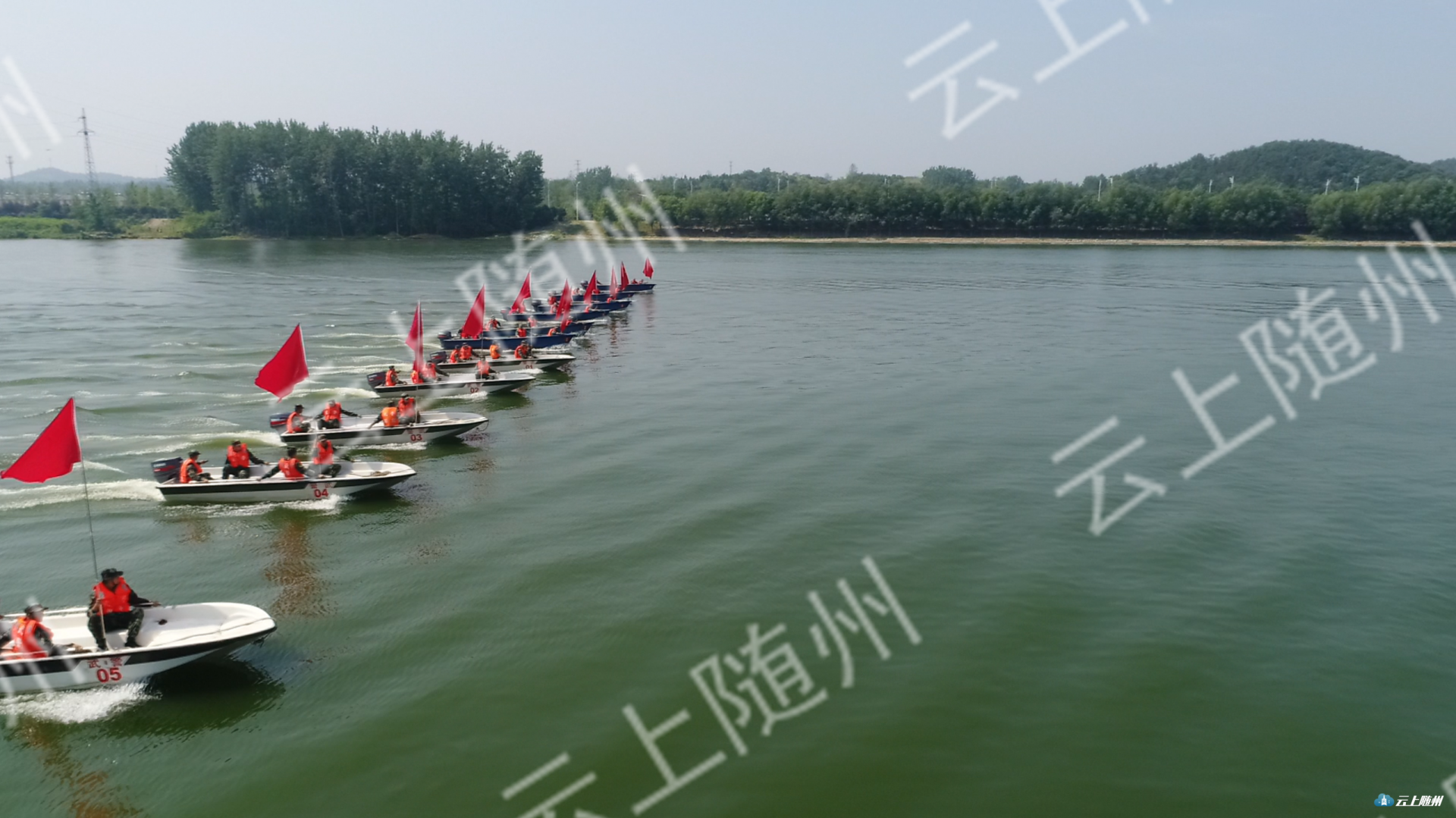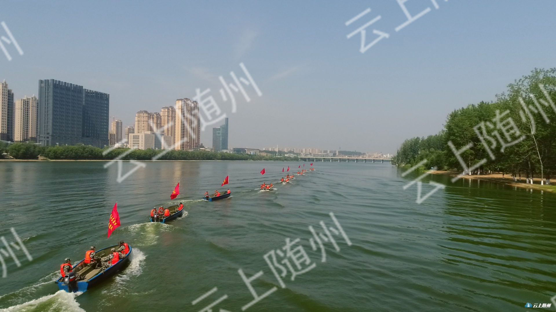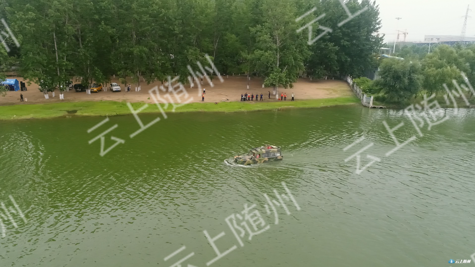 6月14日,随州市2019年军地联合防汛抗洪演练在滨湖体育公园举行, 17家军地单位派出精干力量参加演练。