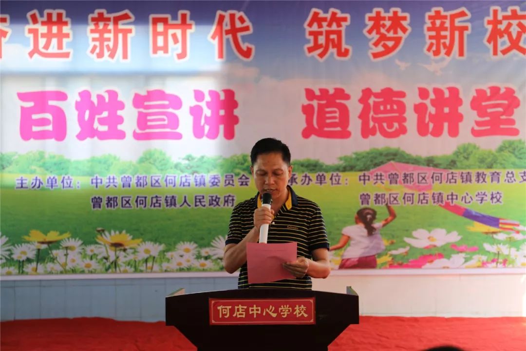 6月14日,何店镇在镇中心学校举行道德讲堂暨百姓宣讲活动。本期道德讲堂以“不文明行为劝导”为主题,共包括“歌唱红歌、组织学习、列举现象、代表宣讲、发出倡议、诵读经典、送出吉祥”等七个环节,现场掌声阵阵,气氛十分热烈。