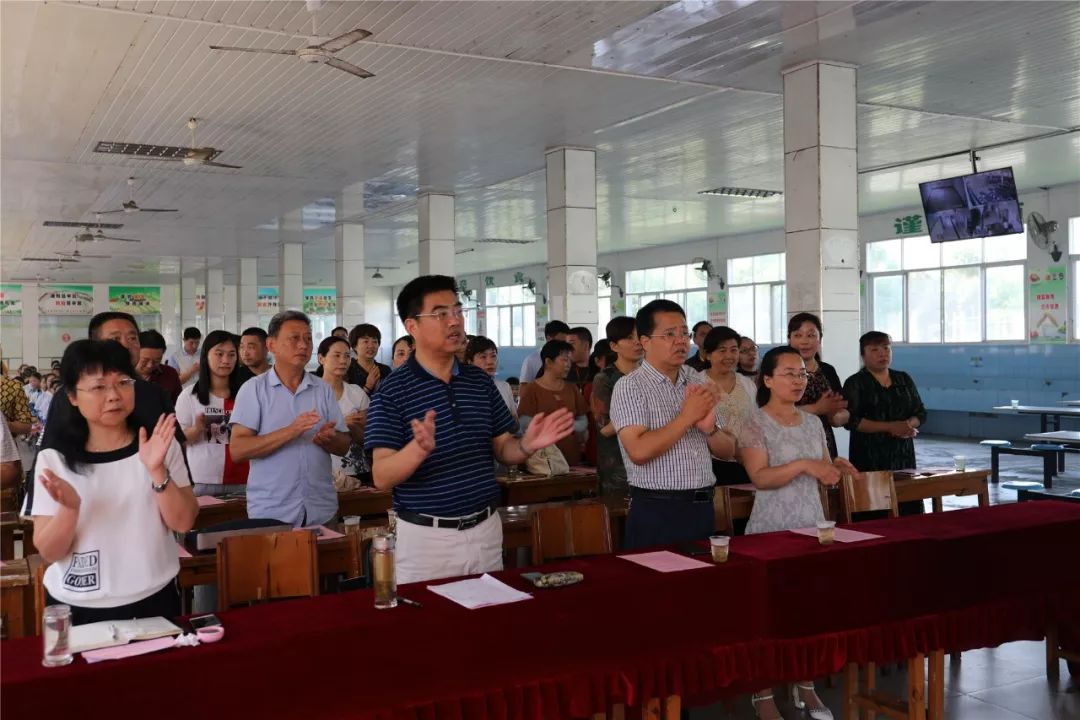 “我和我的祖国,一刻也不能分割……”何店镇小学教师蔡海波为大家演唱《我和我的祖国》,全体人员一同起立合唱,抒发对祖国的热爱之情。