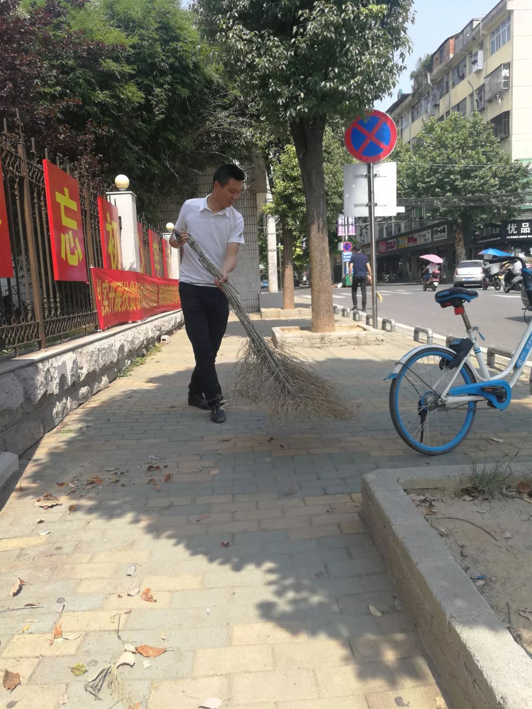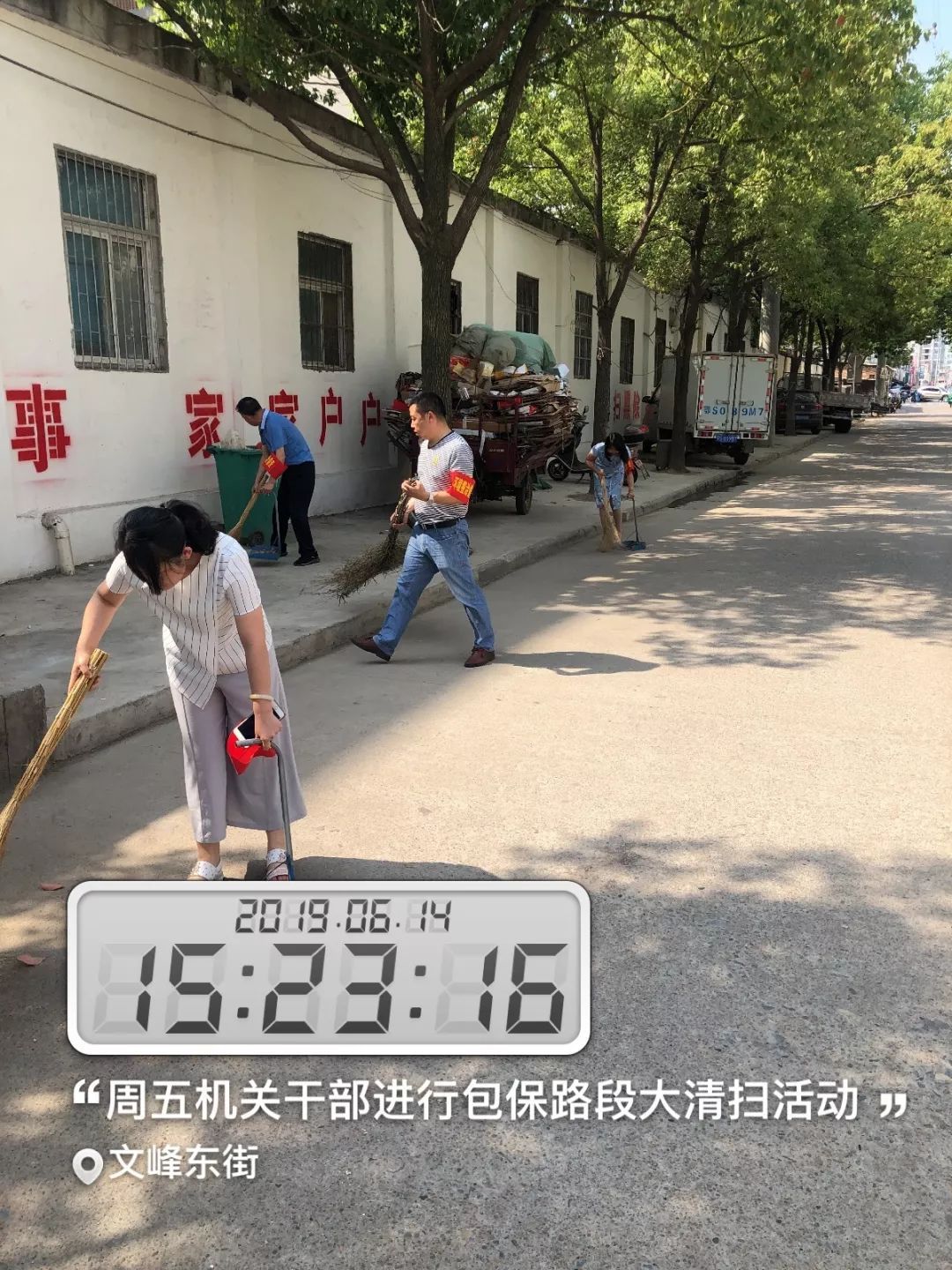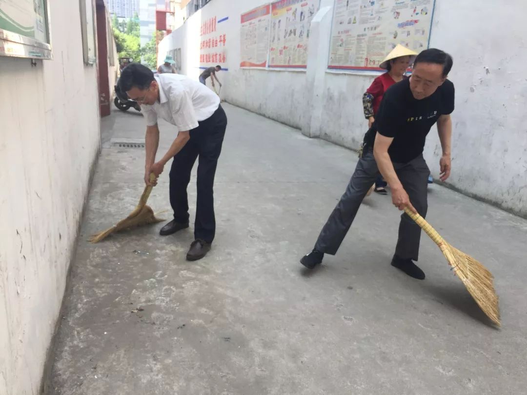 区委书记何运平,区人大常委会主任吴家明,区政协主席黄家洲,区人大常委会副主任张卫洪、章世家,区政协副主席张琳琳、金培富参加周五大扫除活动。