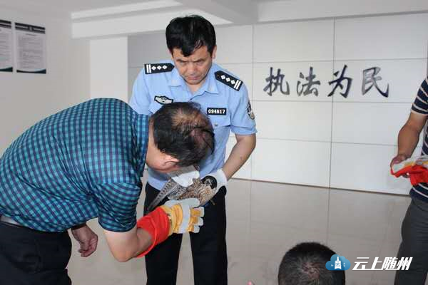 6月14日上午7点30分,经曾都区野生动植物保护站工作人员确认,此鸟名叫燕隼,是一种小型猛禽,常栖息于林间和田间疏林内,以昆虫和小鸟为食,属国家二级保护野生动物。因此鸟受伤不能飞行,分局准备将燕隼移交至湖北省野生动物救护研究开发中心进行救助。