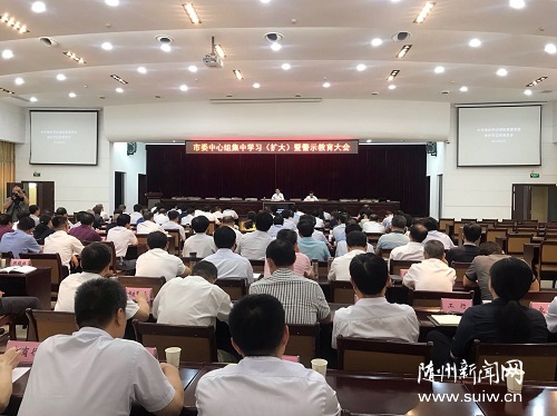 6月14日,市委中心组集中学习(扩大)会议暨警示教育大会召开。市委书记陈瑞峰出席会议并讲话,强调要坚持以习近平新时代中国特色社会主义思想为指导,深入学习贯彻习近平总书记关于全面从严治党的重要论述,认真贯彻落实十九届中央纪委三次全会、省纪委十一届三次全会精神,推动全面从严治党向纵深发展,着力营造风清气正政治生态,为建设品质随州、推动高质量发展提供坚强保障。