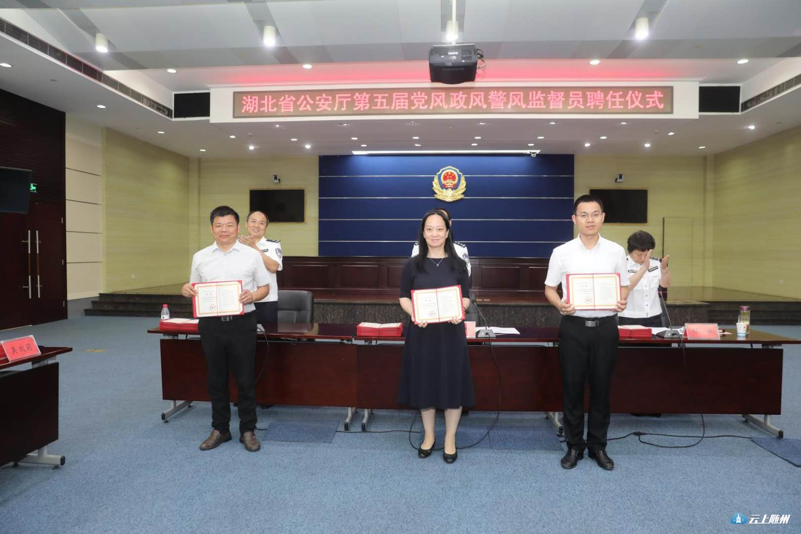 在聘任仪式上,随州广播电视台记者付立明被聘湖北省公安厅党风政风警风监督员。