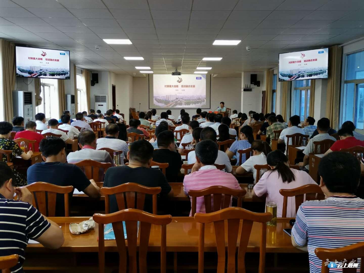 6月20日,广水市市长田涛到广水市委党校,为2019年夏季干部理论培训班学员做了题为《对接重大战略 促进融合发展》辅导讲课。