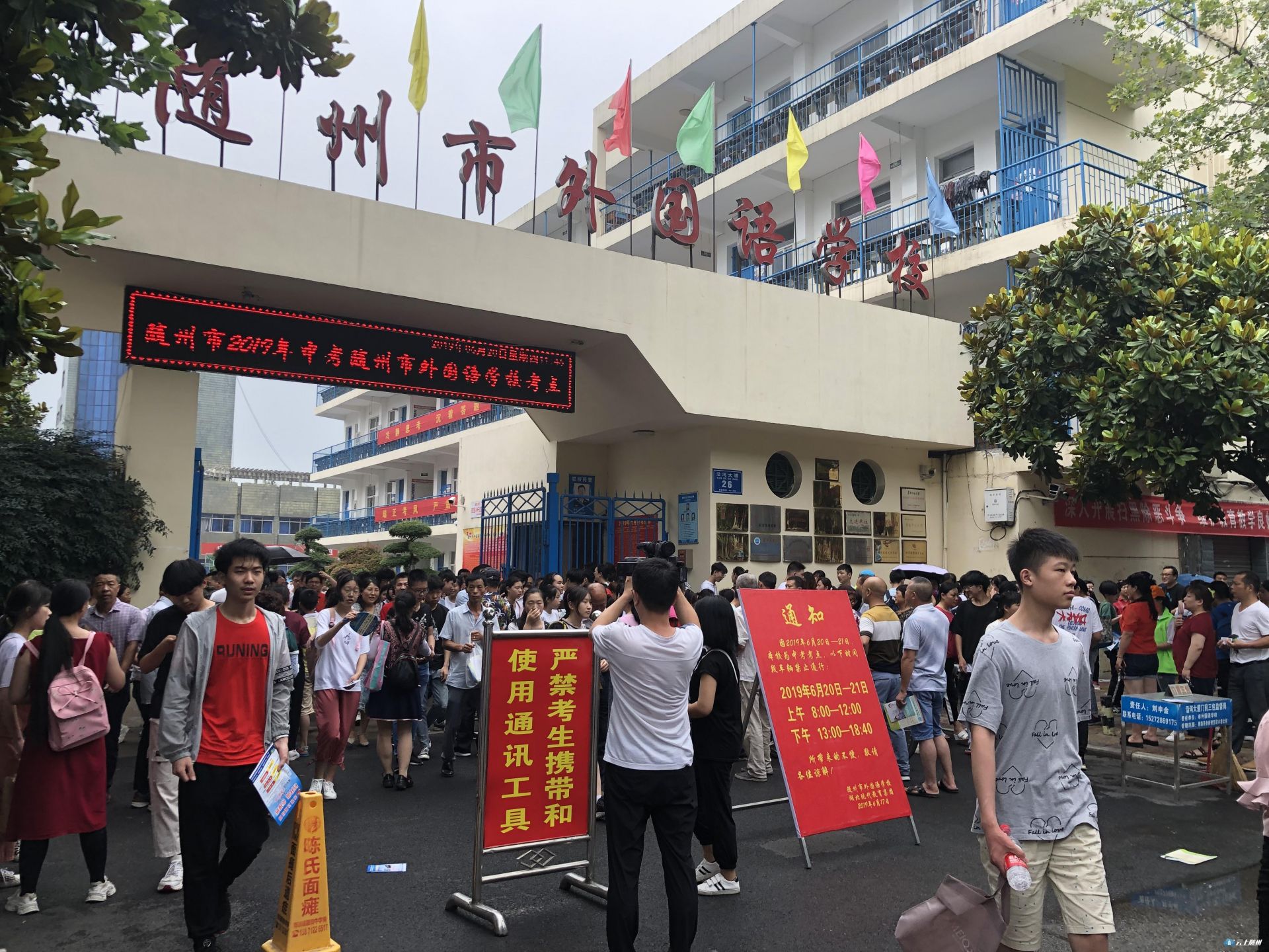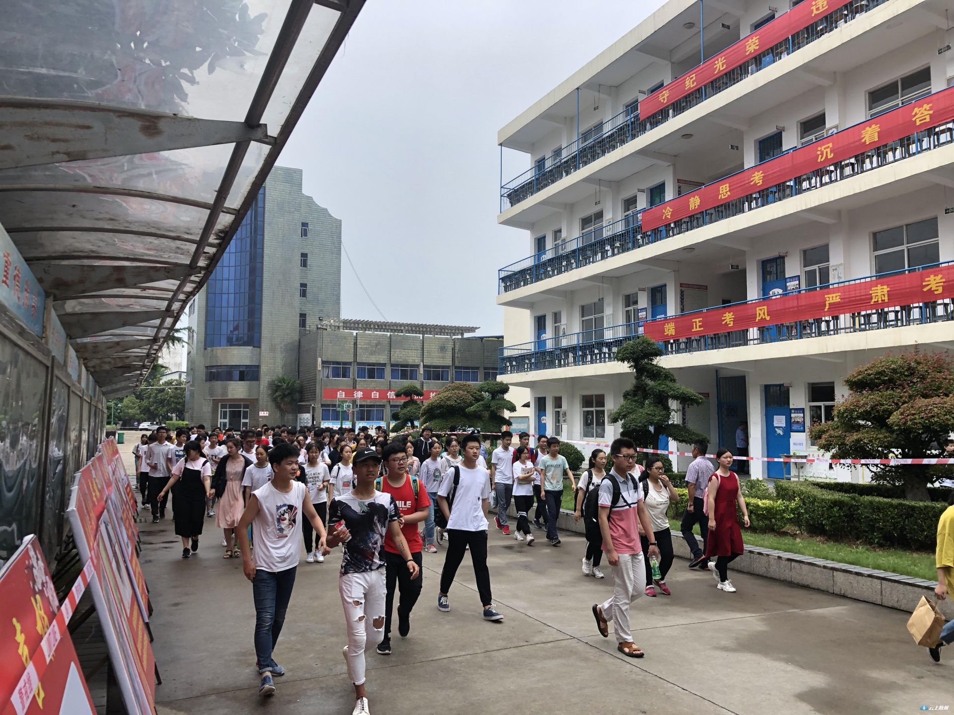 2019年随州市中考语文科目考试顺利结束,图为外国语学校考点考生走出考场。