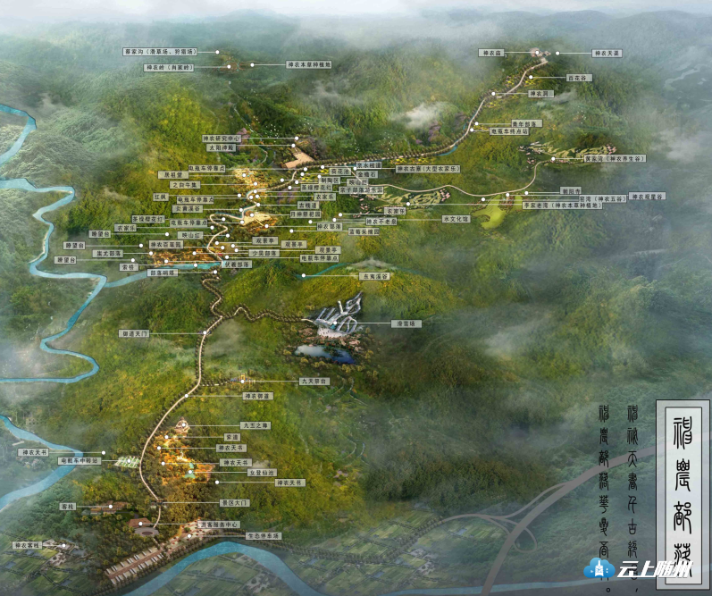 景区对天书遗迹进行保护,并通过打造藤蔓通道形成完整的天书参观体系,展现“圣山”、“圣水”“神秘”和“神圣”。探秘神农天书,破译远古密码,再现神农时期天与地对话的场景,感悟始祖对天地自然的崇拜与敬畏。