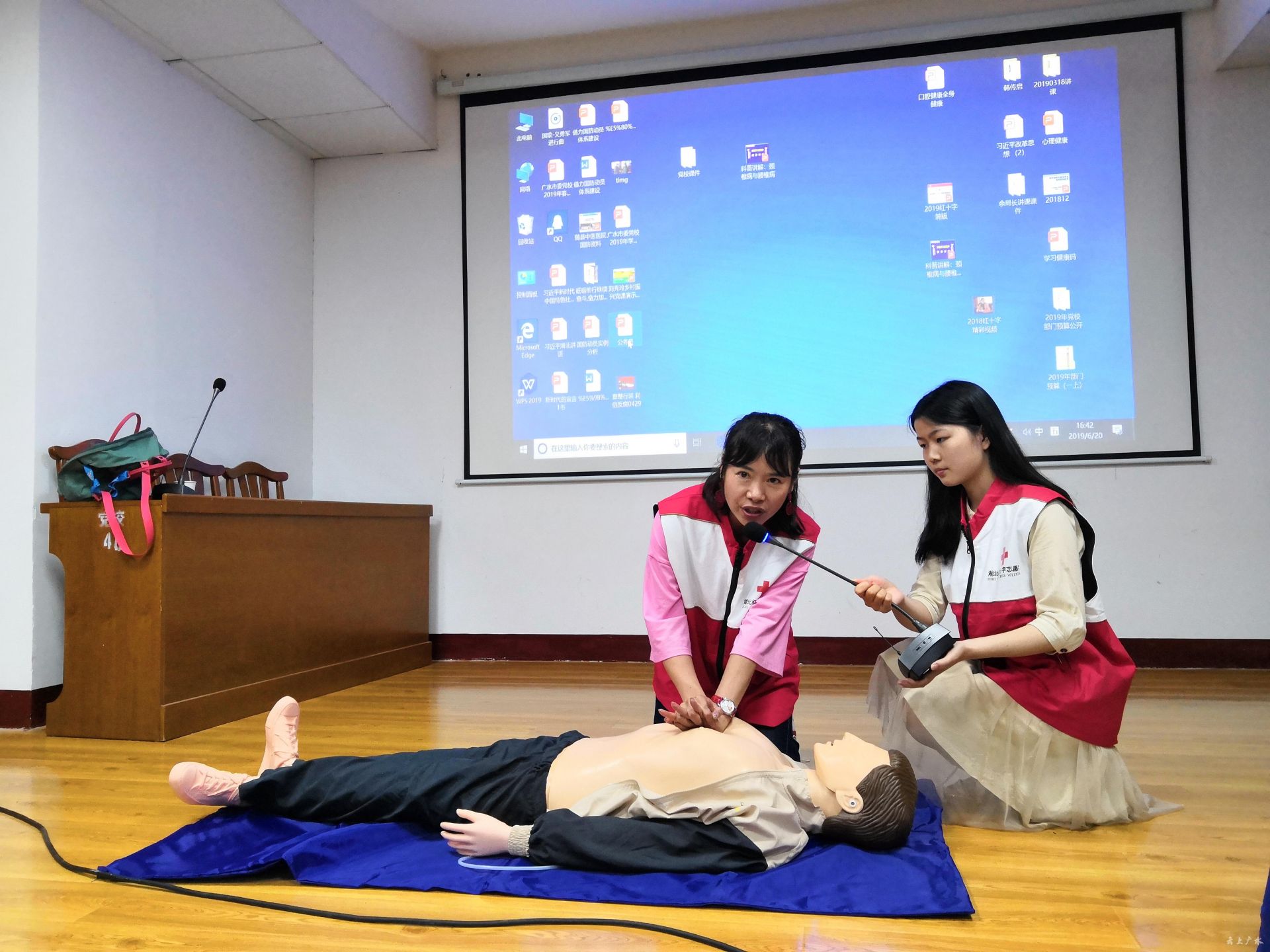 为普及应急救护知识,提升机关干部的自救互救能力,6月20日下午,广水市红十字会在广水市委党校举办意外事件应急救护培训。这是红十字会自去年应急救护培训进党校实现常态化以来的第5次授课。