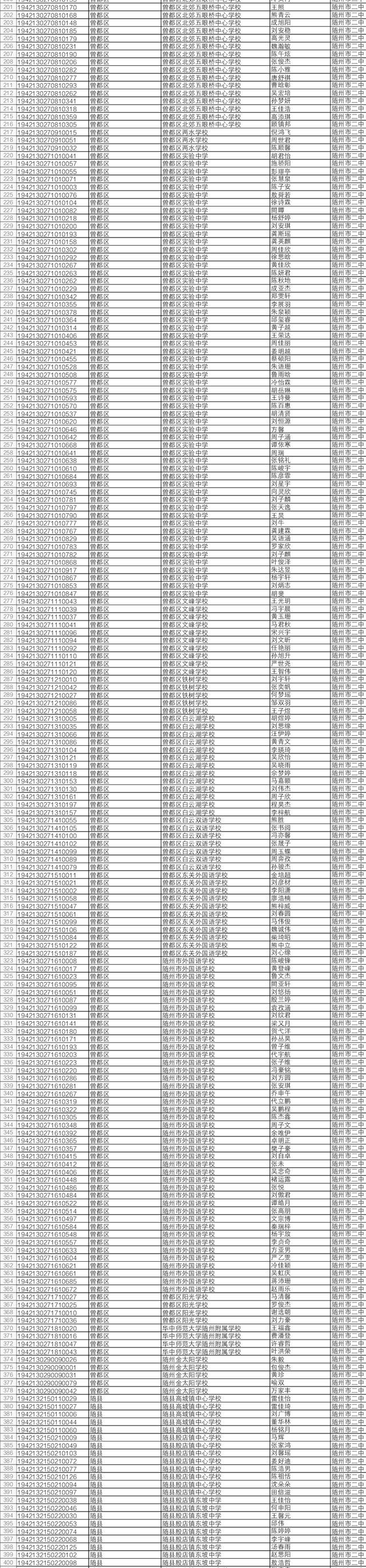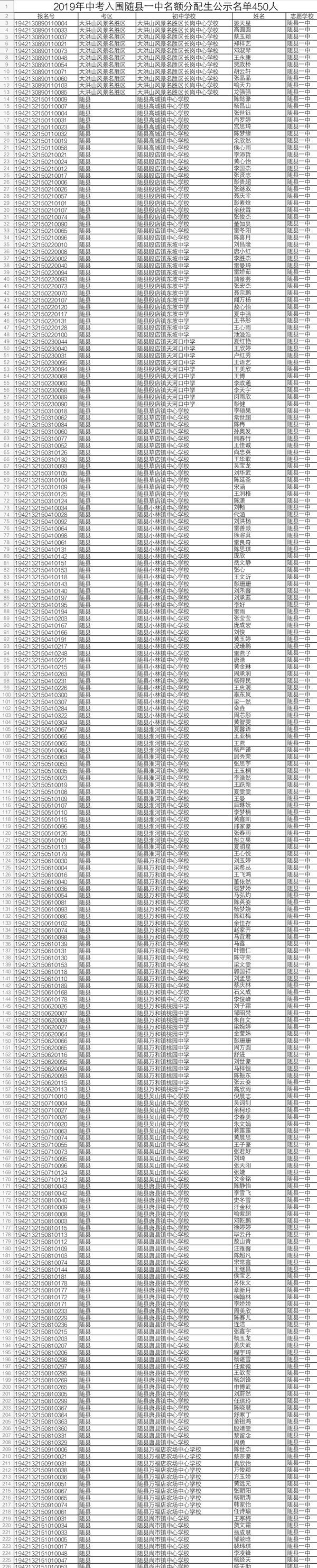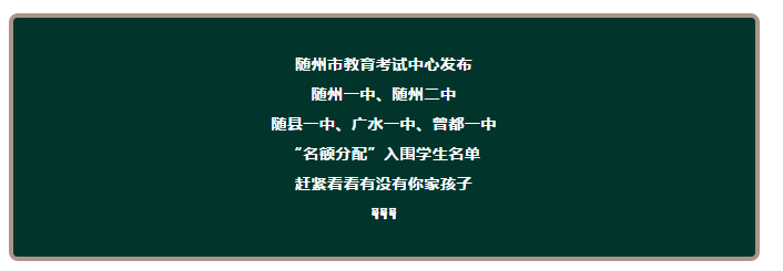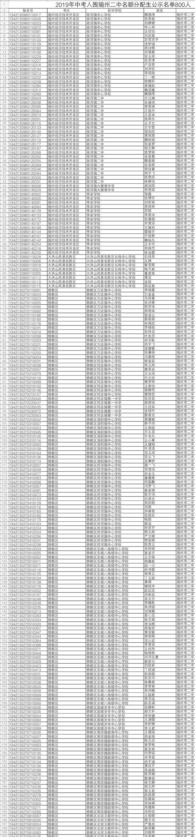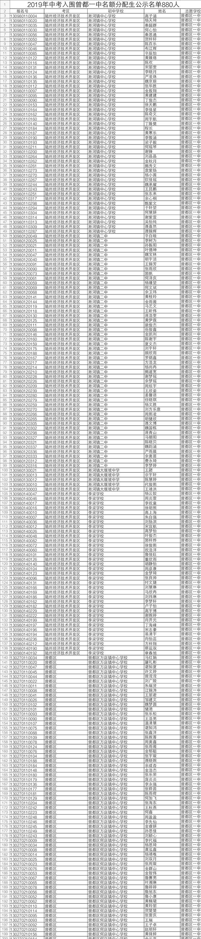 2019年中考于6月20日至21日举行。随州市有16884名应届初中毕业生报名参加中考,比去年增加2292人。近日,随州市教育考试中心发布了今年中考“名额分配”招生入围学生名单。